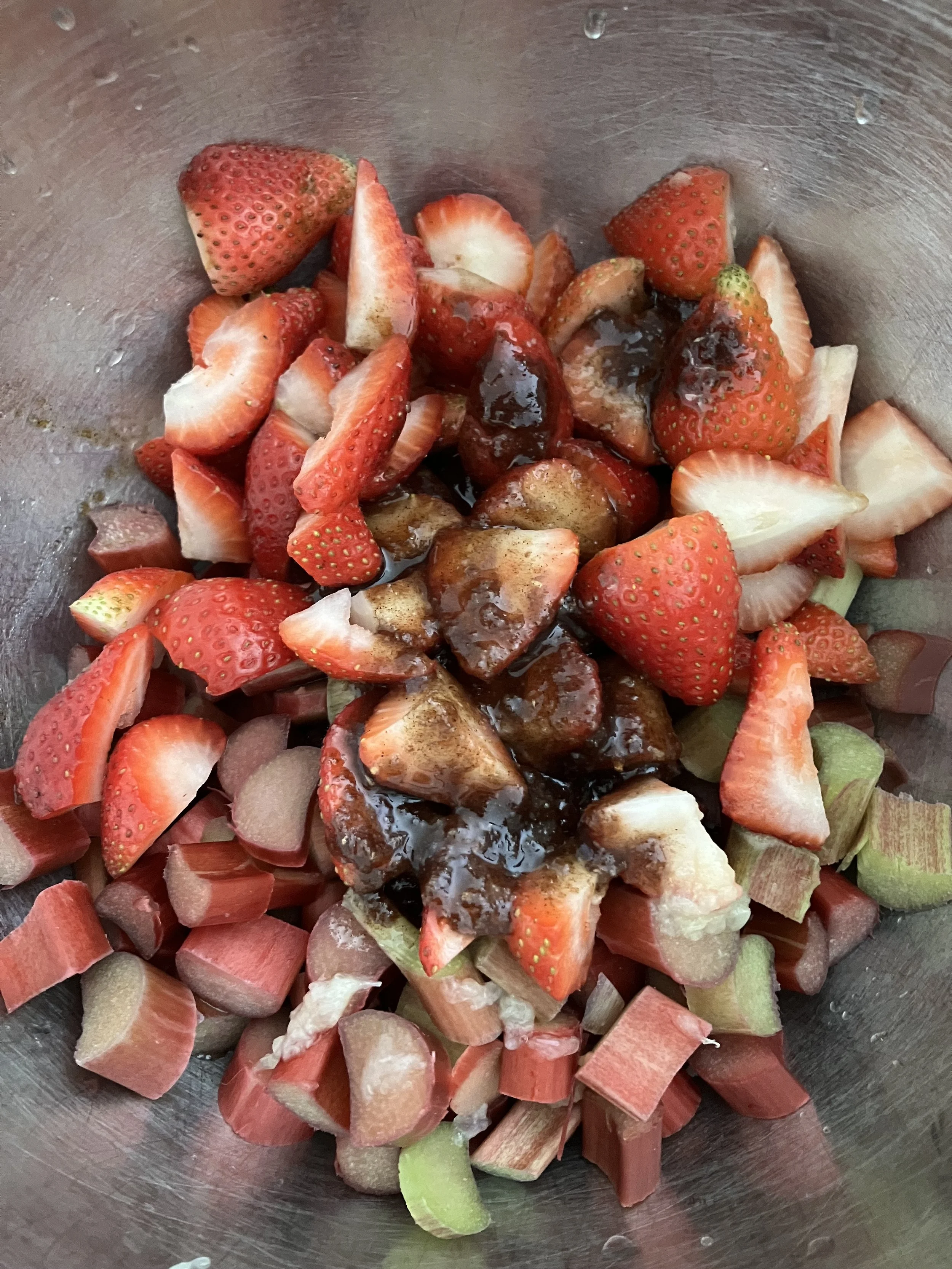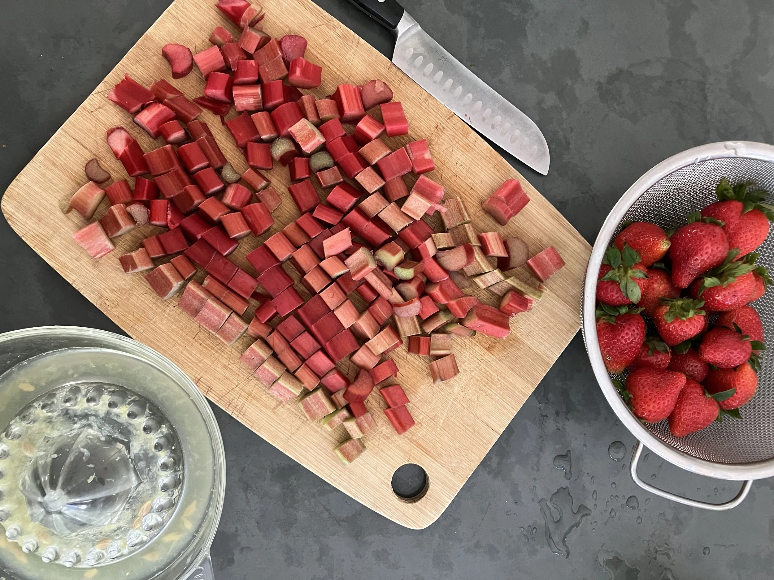 4-5 organic rhubarb stalks, diced 1-2 inches (don’t eat the leaves)